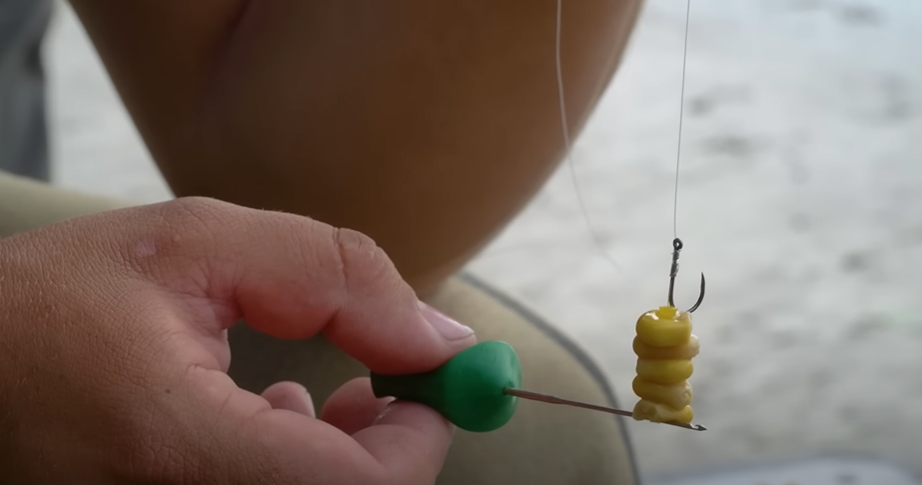 Но все-таки презентация на волосе, опять-таки по моему мнению, является более результативной, поскольку если мы будем насаживать напрямую на крючок, а зёрен нужно насадить достаточно таки много и немножечко будем закрывать жало, тем самым сазану не так будет комфортно засекаться. А если это будет волос, он будет спокойно всасывать крючок, будет попадать вовнутрь и собственно пробивать губу у нашего трофея.